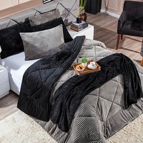 KIT COBRELEITO CASAL MICROFIBRA LISA 2,20X2,40 SORTIDO