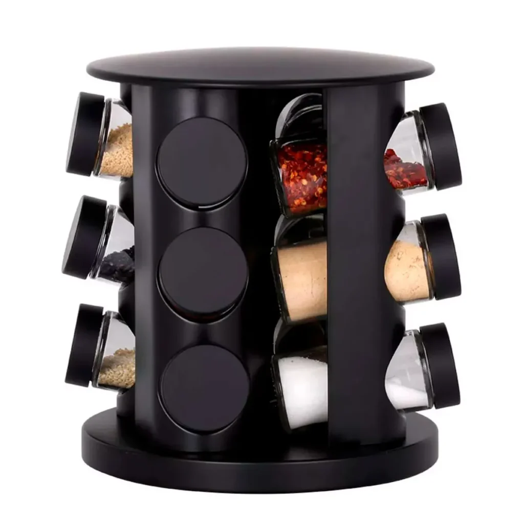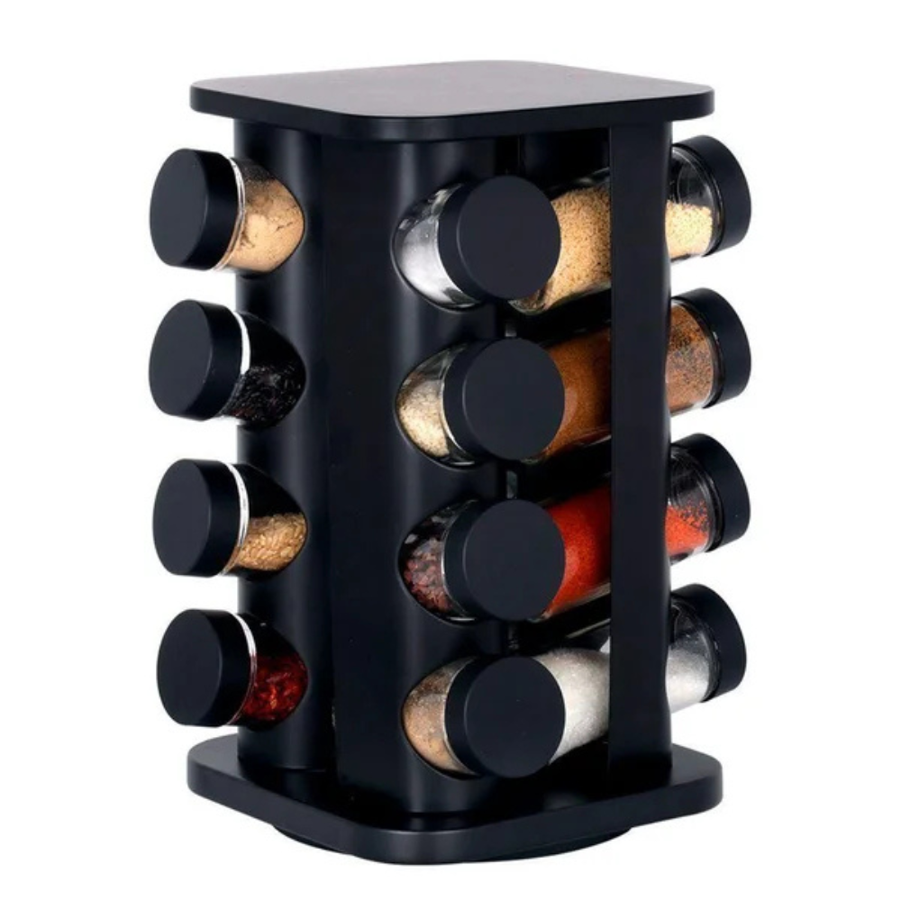 PORTA TEMPERO GIRATÓRIO COM 12 POTES COR PRETO