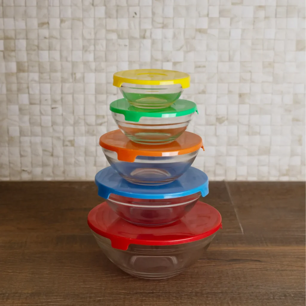 CONJUNTO 5 TIGELAS DE VIDRO STRIPLINS COM TAMPA SORTIDO