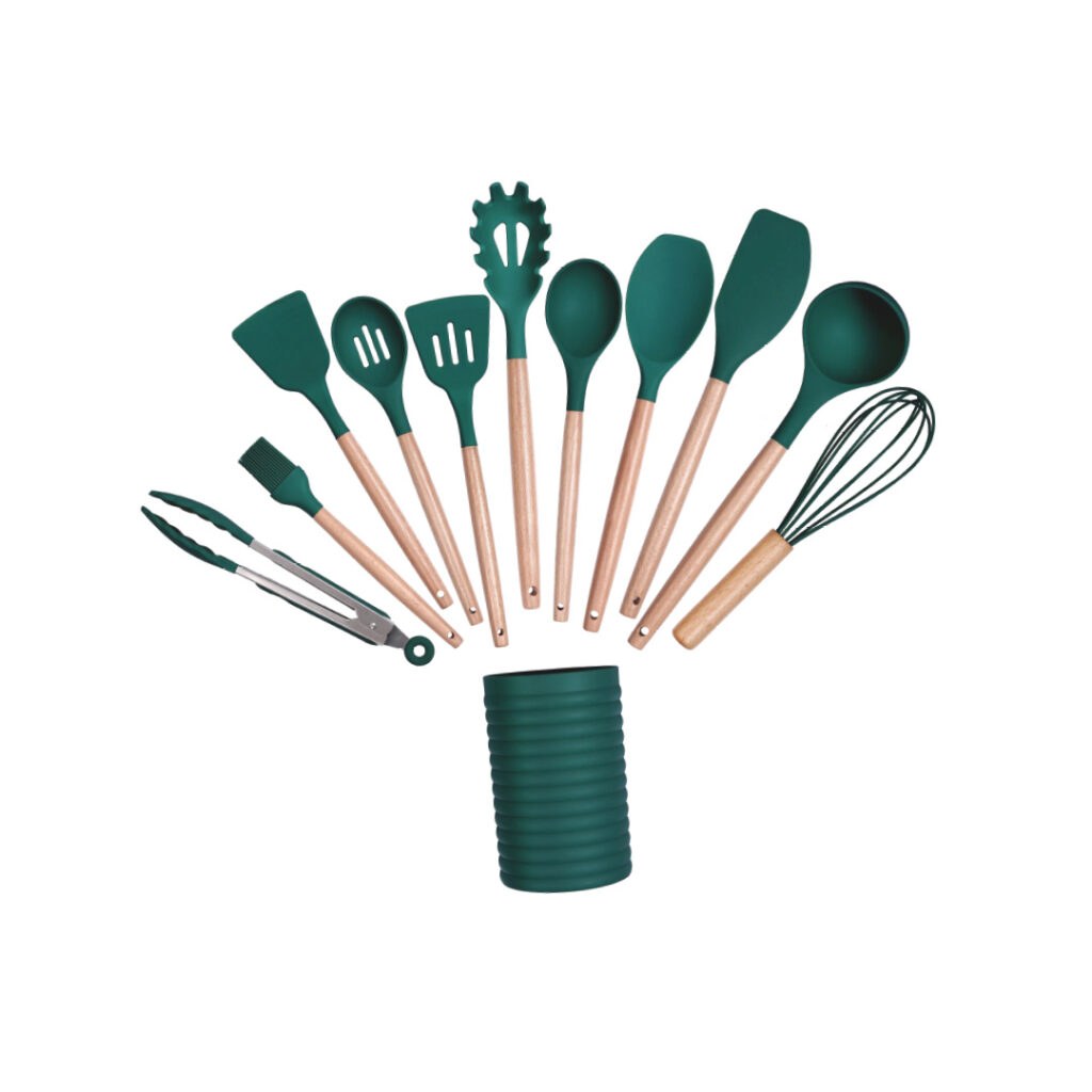 CONJUNTO UTENSÍLIOS DE COZINHA 12 PEÇAS SILICONE COM CESTO SORTIDO