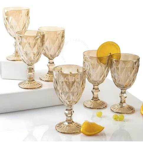 JOGO 6 TAÇAS EM VIDRO DIAMOND 330ML AMBAR