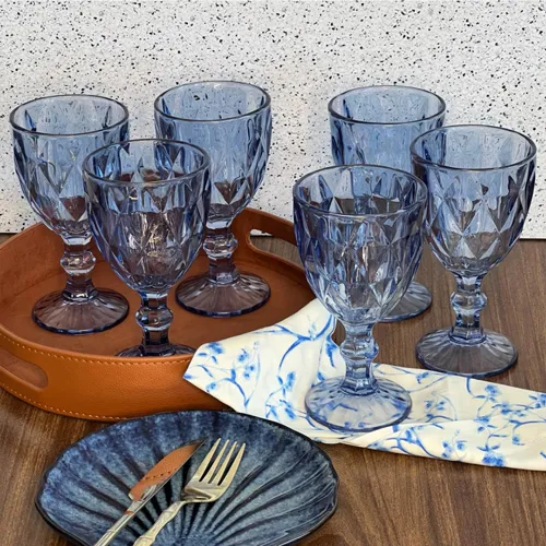 JOGO 6 TAÇAS EM VIDRO DIAMOND 330ML AZUL