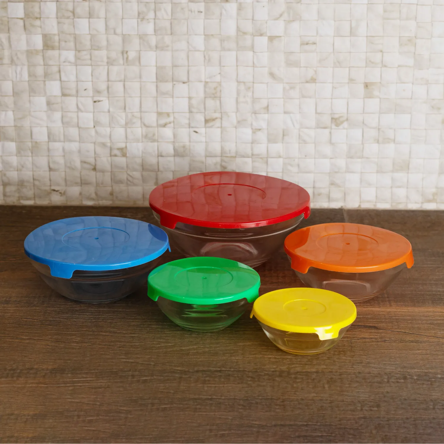 Conjunto de 5 Tigelas de Vidro com Tampa Homeland colorido