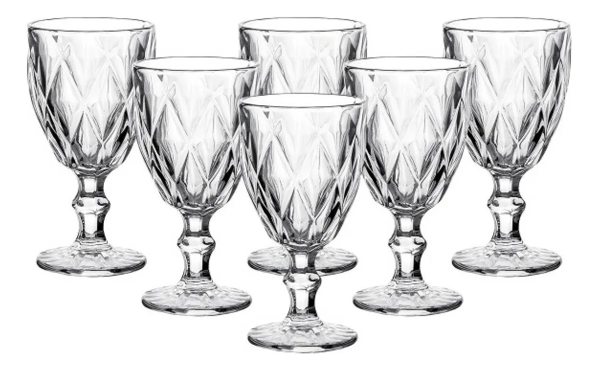 CONJUNTO 6 TAÇAS DE VIDRO DIAMOND TRANSPARENTE 230ML