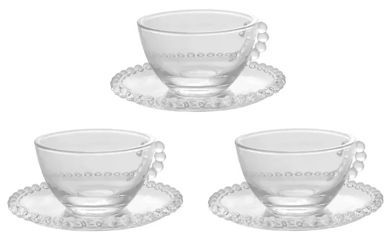 CONJUNTO 6 XÍCARAS CHÁ COM PIRES EM VIDRO BUBBLY 220ML TRANSPARENTE