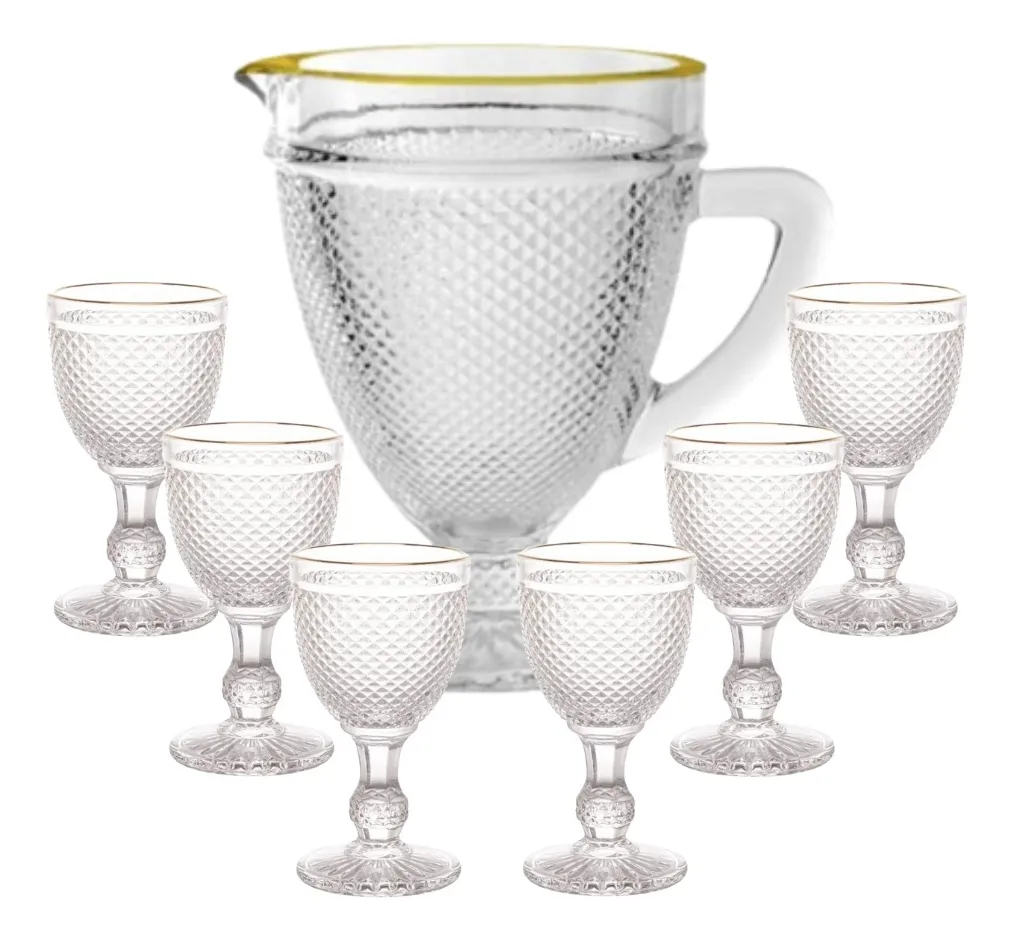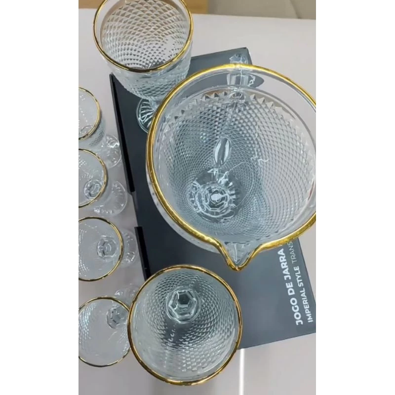 CONJUNTO JARRA 1350ML E TAÇAS 300ML BORDA DOURADA IMPERIAL STYLE