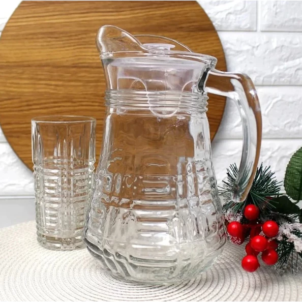 CONJUNTO JARRA E 6 COPOS VIDRO ATHENA 1,3LT 250ML TRANSPARENTE