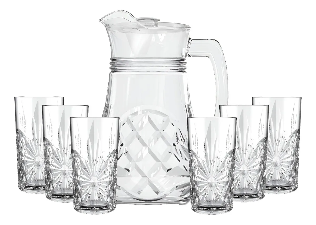 CONJUNTO JARRA E 6 COPOS VIDRO ROZANA 1,3LT 250ML TRANSPARENTE