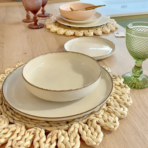 PRATO RASO MODERNA 100% PORCELANA 24CM BEGE PEROLADO